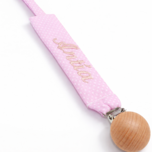 Chupetero con topitos blancos personalizado. 4 Colores disponibles